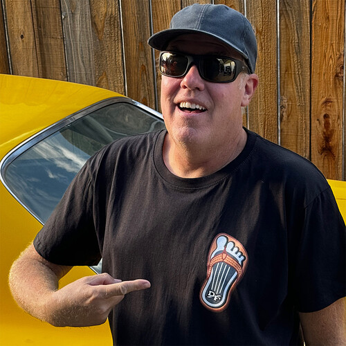 This is so cool! A new artist to the D/F line is John McNamara, and he came up with this cool design featuring one of the old cast-aluminum-foot throttle pedals in a traditional Freiburger flip-flop. So perfect! Throw in the Lead Foot lettering and this shirt is an instant D/F classic. This new logo is one that’s sure to live on, but you can get in on the ground level by snagging this first-ever flip-flop design.